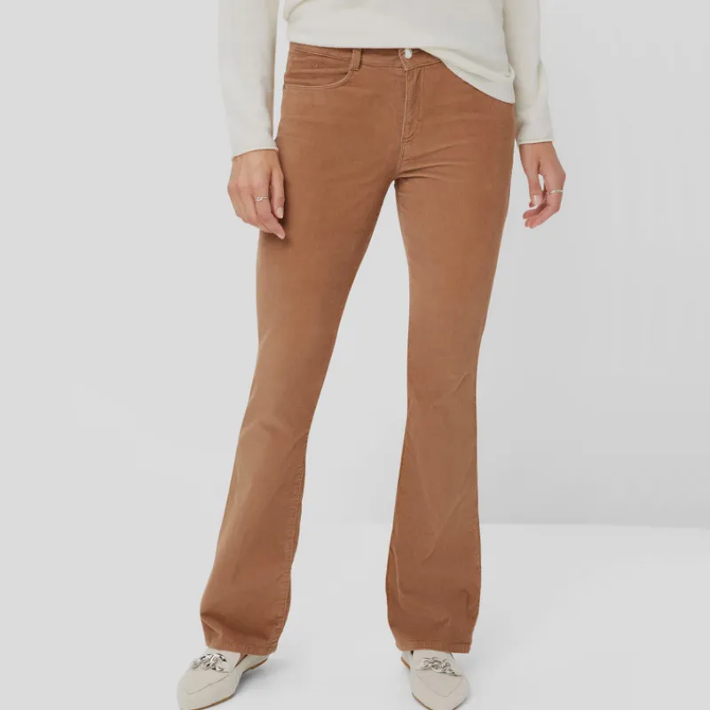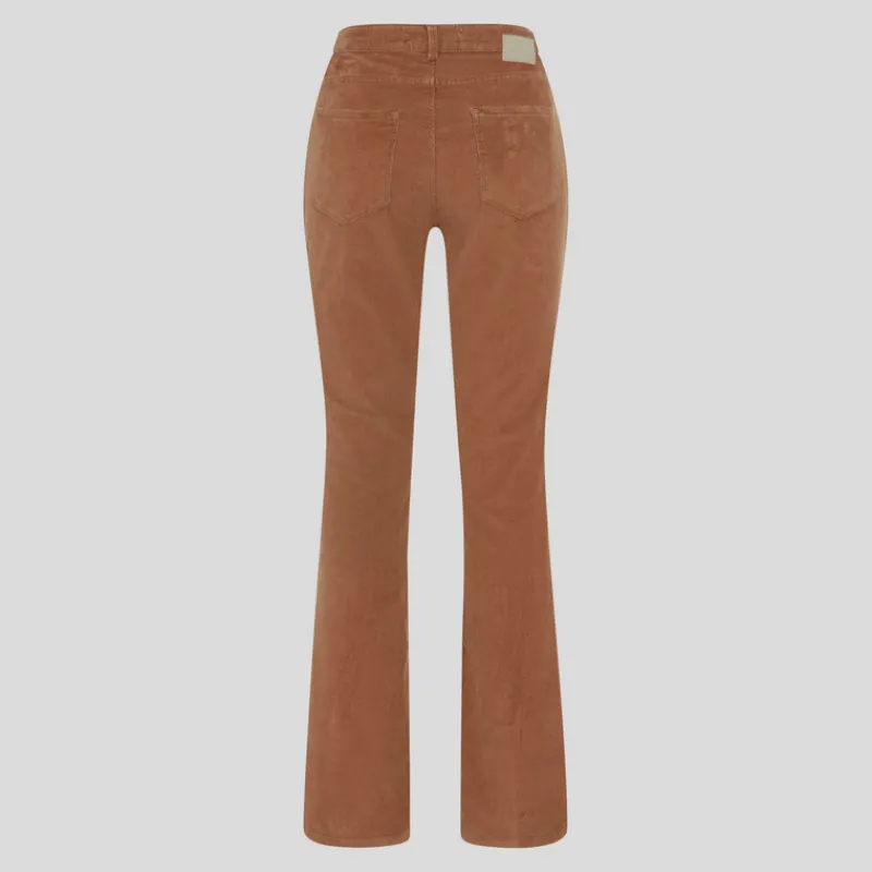 Pantalón MICROPANA de BRAX FEEL GOOD modelo SHAKIRA en tejido de algodón elástico color CAMEL. Diseño Slim Bootcut con cintura normal realza tu figura al máximo gracias a su corte entallado con pierna acampanada desde la rodilla. Lleva 4 bolsillos.