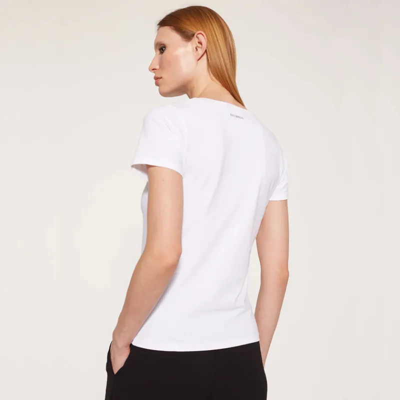 Camiseta básica de ESCORPION confeccionada en algodón elástico color BLANCO. Cuello redondo y manga corta. Detalle de logo de escorpion en la parte trasera del cuello.