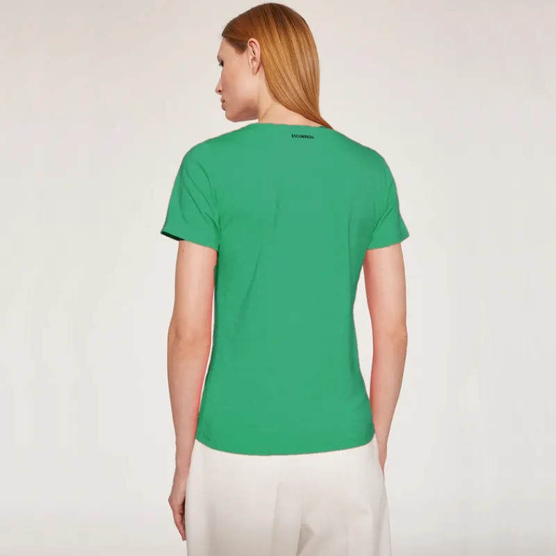 Camiseta de ESCORPION en algodón elástico color TURQUESA. Lleva cuello redondo con escote en corte V y manga corta. Detalle de logo en la trasera del cuello.