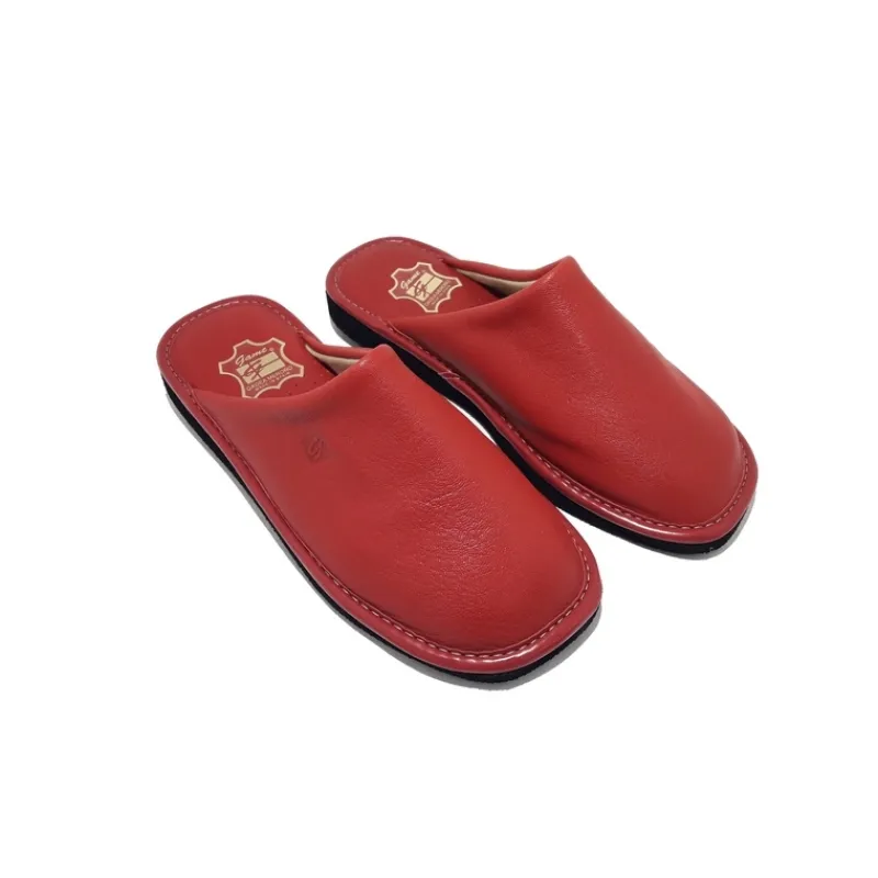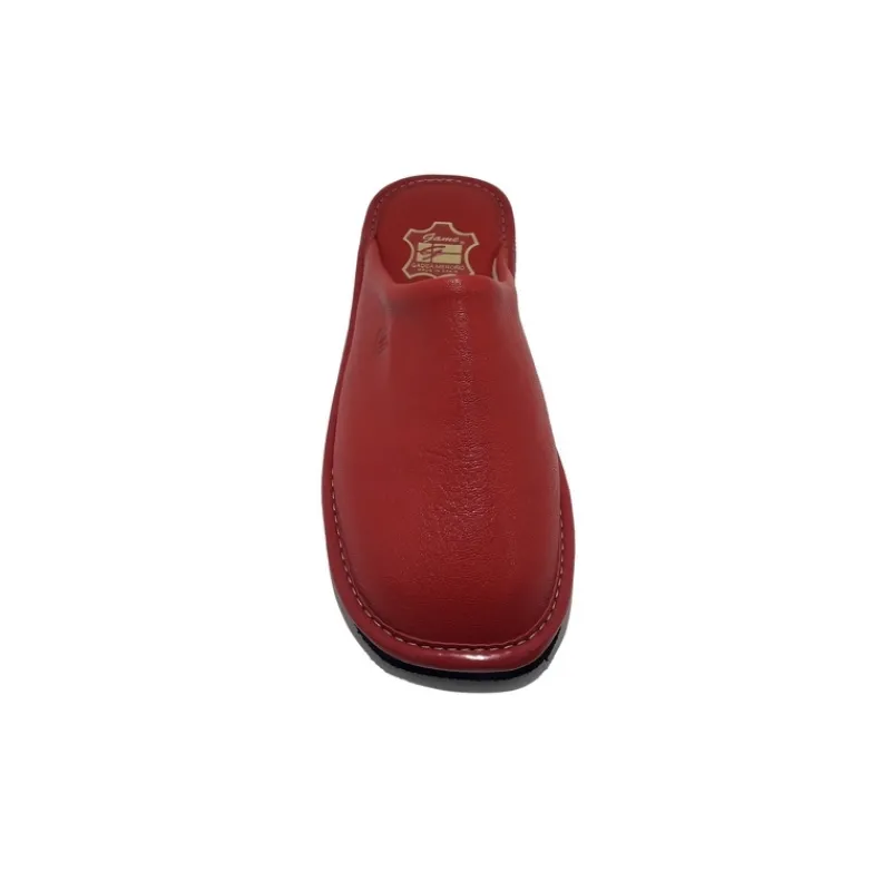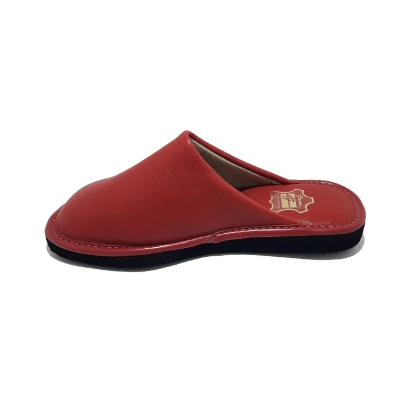 Zapatilla de mujer GADEA MEROÑO modelo 16001 de piel color ROJO abierta de talón, con pala lisa y puntera cuadrada. Suela realizada en microporoso que la hace ultraligera. Cuña baja y horma ancha. Forro interior en algodón con talón acolchado en piel.