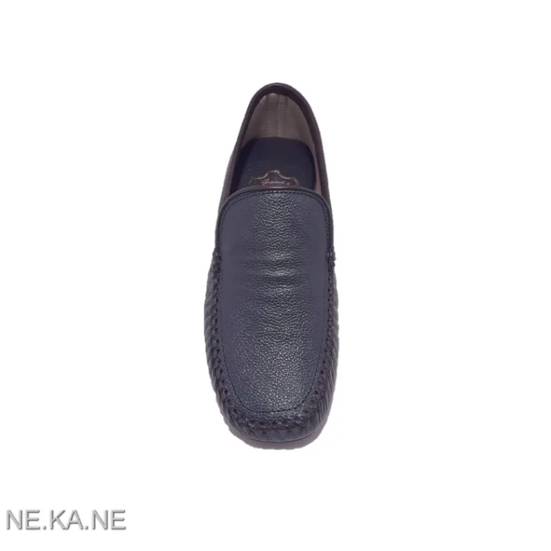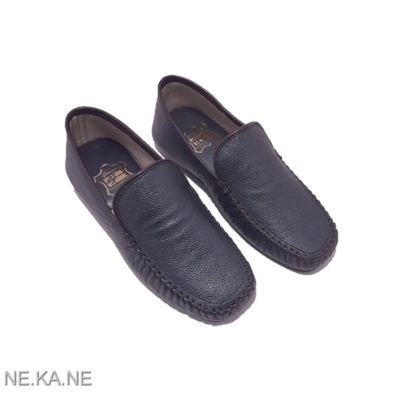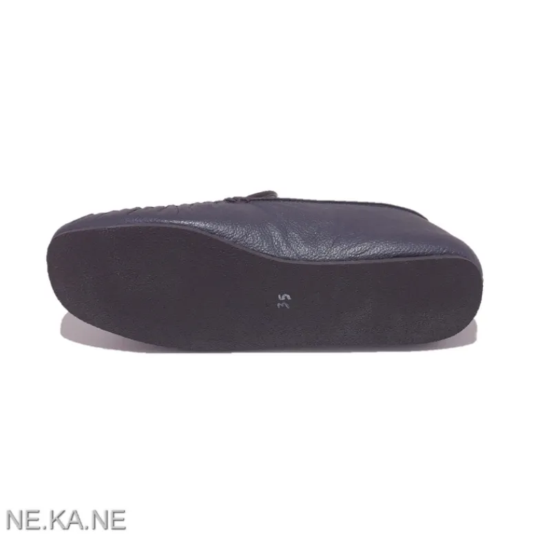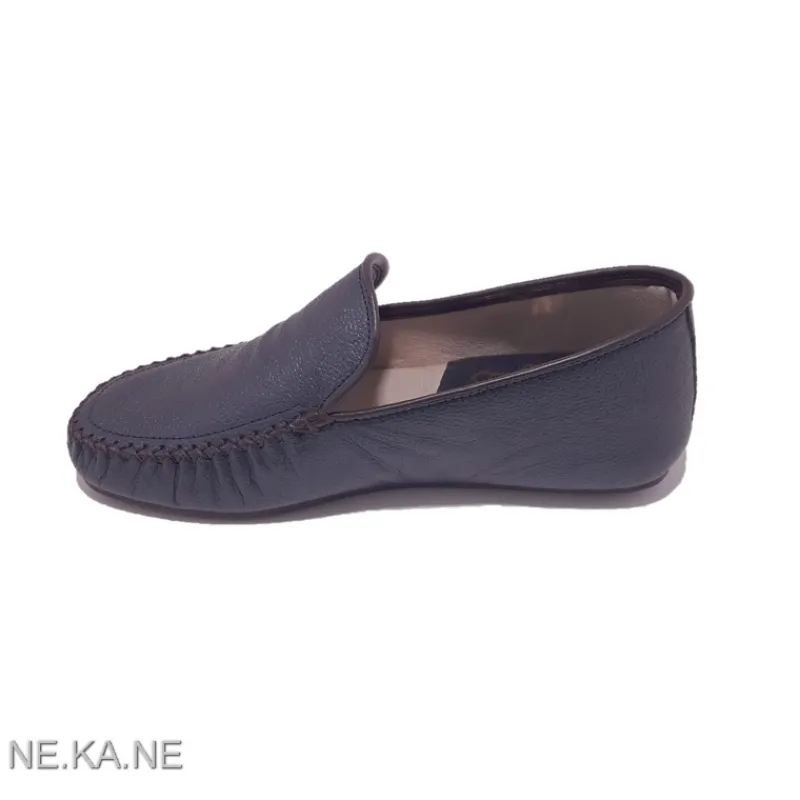 Zapatilla de Mujer GADEA MEROÑO modelo 30002 estilo MOCASÍN de piel METALIZADA AZUL GRISÁCEO cerrada de talón. Detalle de ribete en piel y costura en zig-zag. Suela fina de goma antideslizante. Cuña baja. Interior en algodón con talón acolchado en piel.