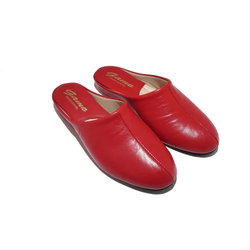 Zapatilla clásica de mujer GADEA MEROÑO modelo 700 de piel color ROJO abierta de talón con la costura completa en la banda central de la pala. Suela realizada en serraje o piel vuelta, lo que se llama piso silencioso. Cuña baja y horma ancho normal.
