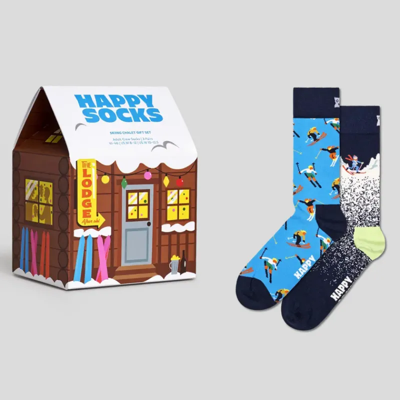Caja de calcetines HAPPY SOCKS mezcla de algodón orgánico peinado modelo 2-PACK SKIING CHALET GIFT SET con talón y de…