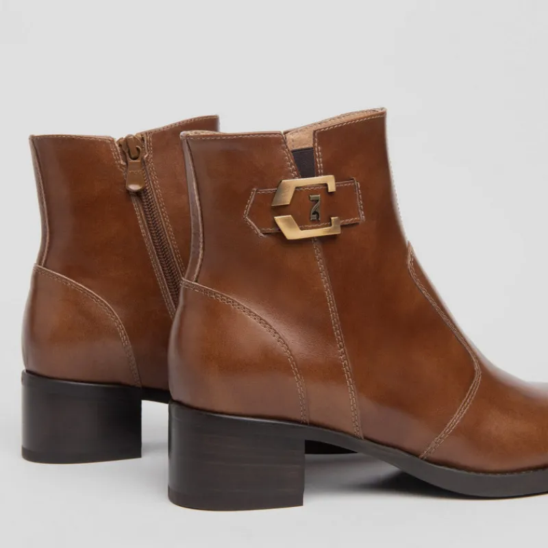 Botín de cremallera NERO GIARDINI en florentic CUERO de corte clásico con logo metálico tipo hebilla en el lateral. Puntera redonda. Plantilla extraíble con tecnología DryGo!® absorbe la humedad, garantiza confort y bienestar.Tacón ancho y suela de goma.