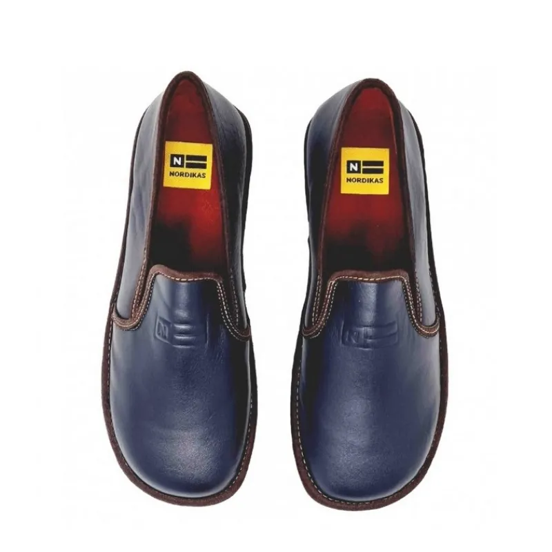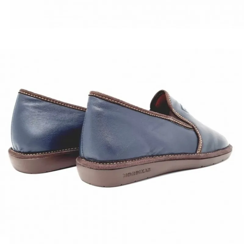 Zapatillas de casa NORDIKAS de hombre modelo 7517 TOP LINE CAB DUBLIN en piel color MARINO. Tejido afelpado en su interior para mayor calidez. Cerrada por detrás y con elásticos laterales. Suela de goma antideslizante y aislante del frío.