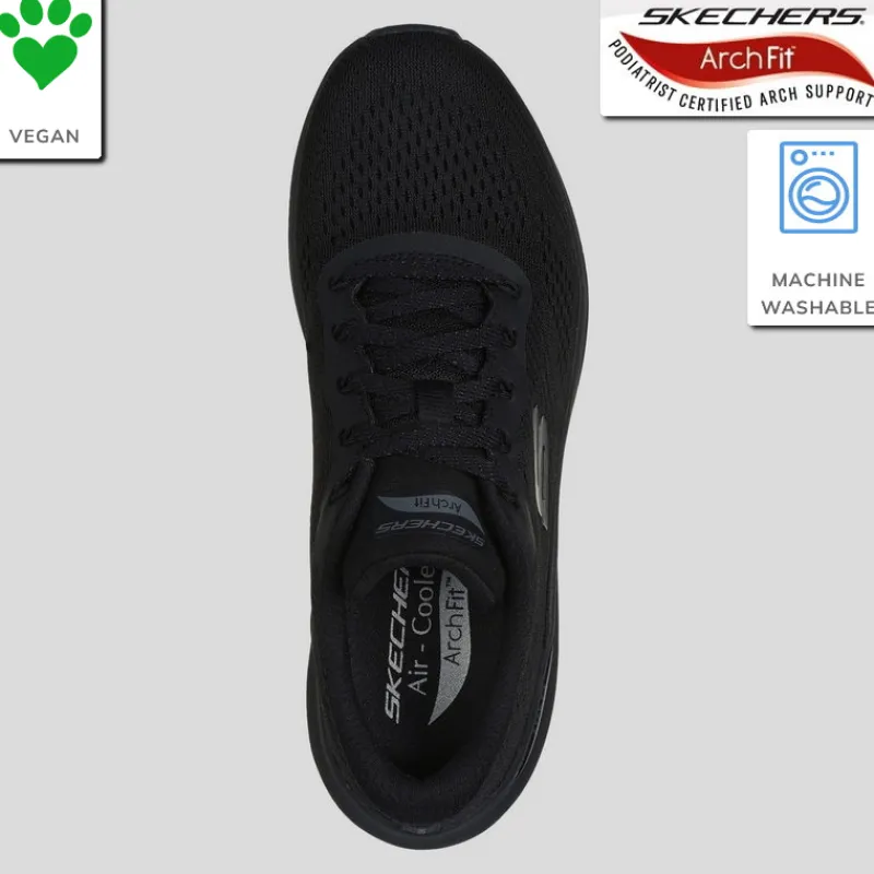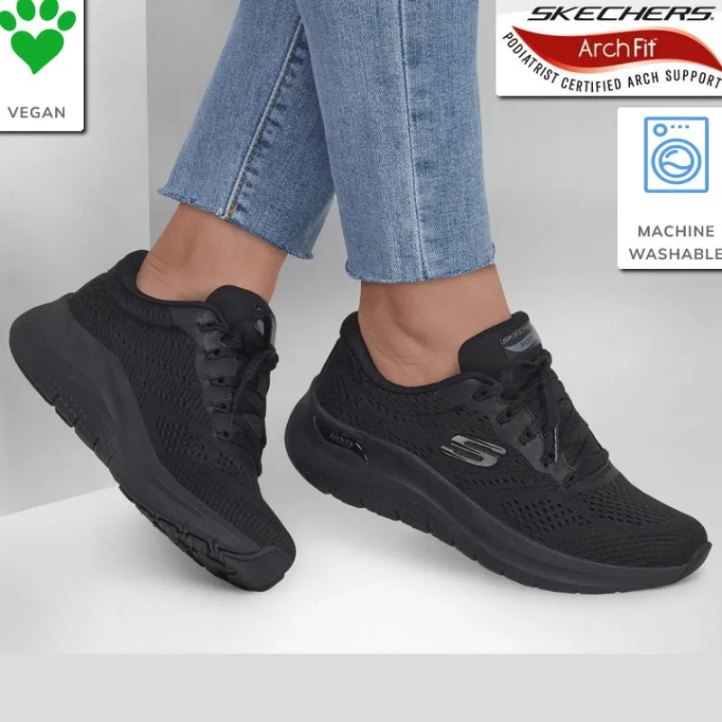 Deportiva vegana de Mujer SKECHERS ARCH FIT modelo 2.0 – BIG LEAGUE en tejido técnico color NEGRO. Sistema de plantilla Arch Fit CON SOPORTE EN EL ARCO PLANTAR CERTIFICADO POR PODÓLOGOS. Plantilla confort EXTRAÍBLE diseñada para mayor comodidad.