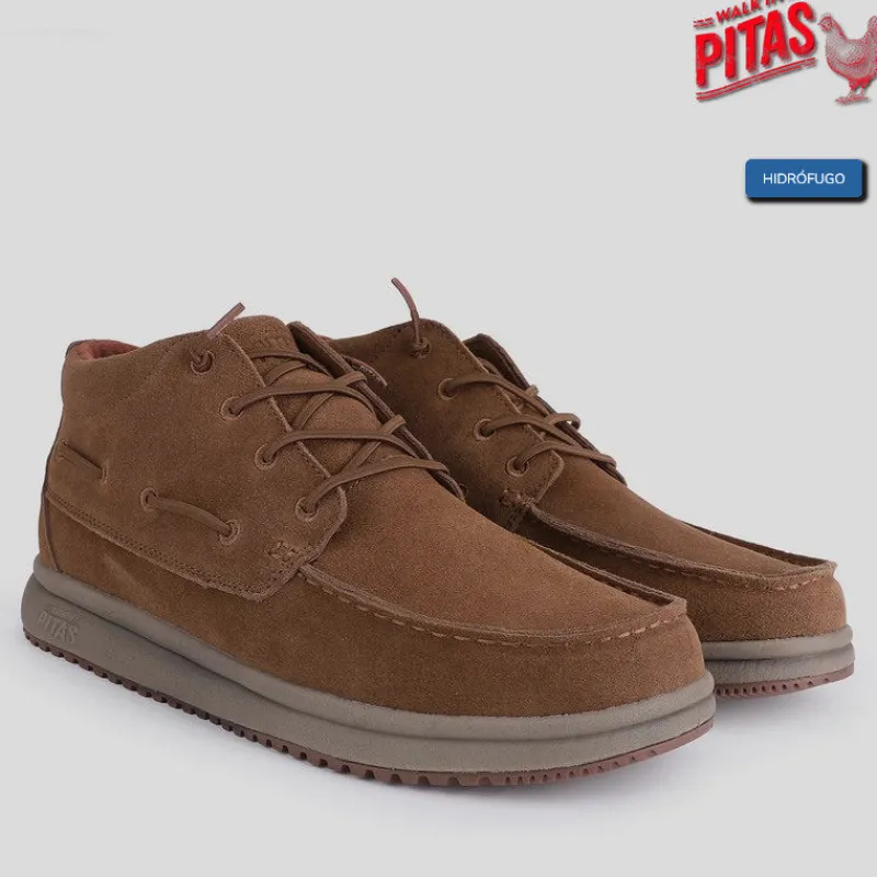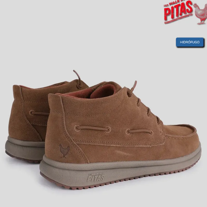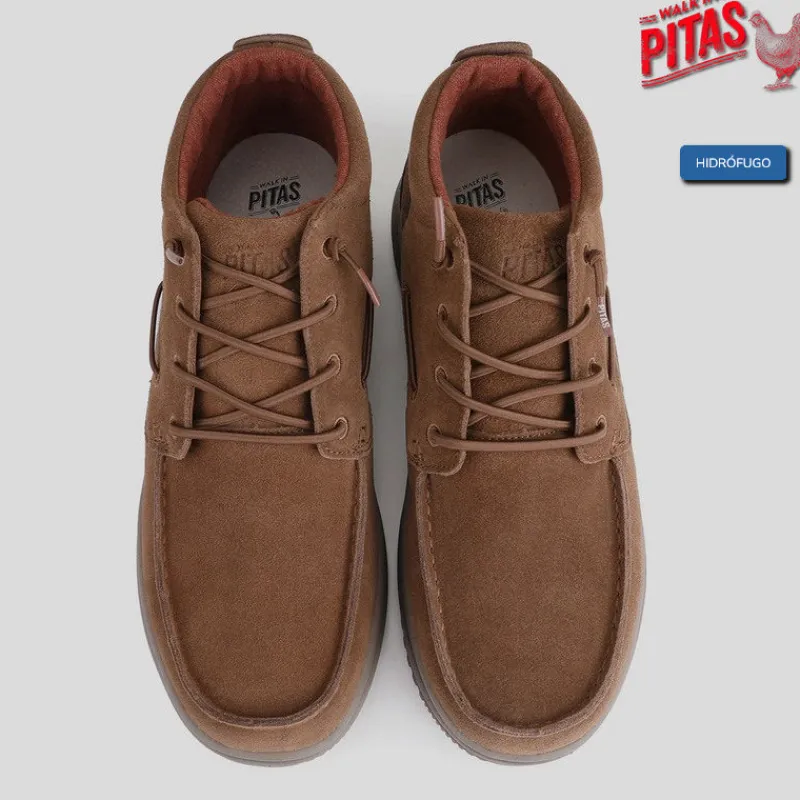 Botín Naútico Hombre WALK IN PITAS modelo TIMOR SUEDE color CAMEL en ante hidrofugado WATER-REPELENT. Plantilla extraíble EVA PITAS-COMFORT con planta de piel. Forro textil. Suela WAVE de EVA ultralight con goma ANTIDESLIZANTE. Cordones elásticos al tono.
