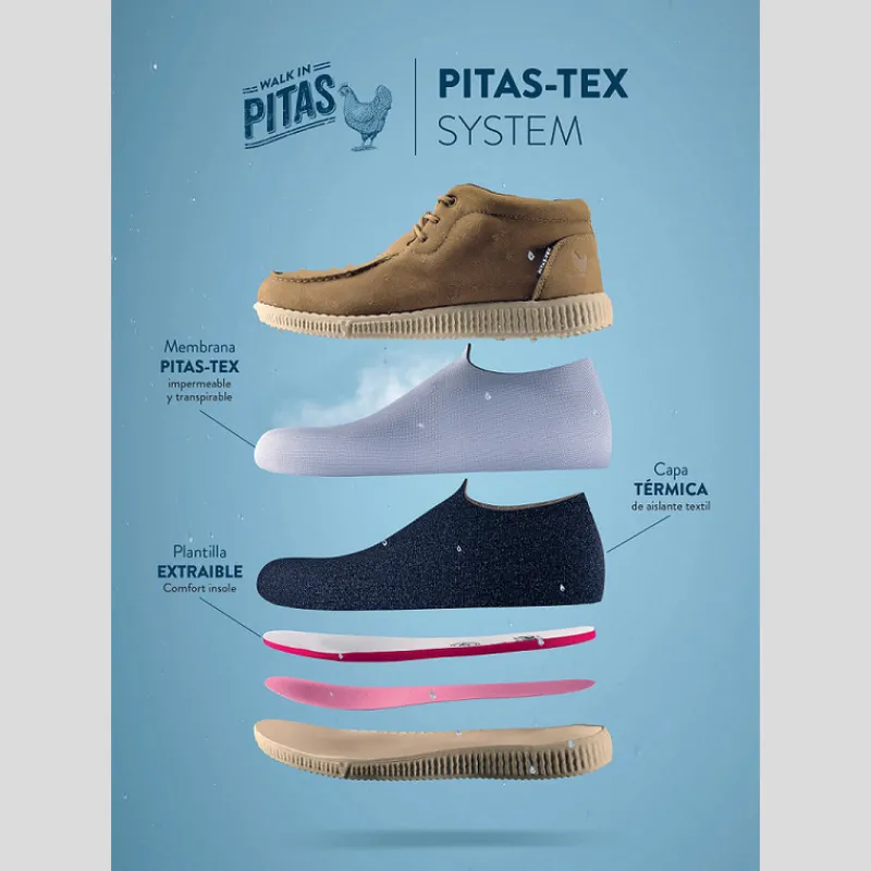 Descubre su línea PITAS-TEX impermeable para que tus pies estén siempre secos y calentitos.